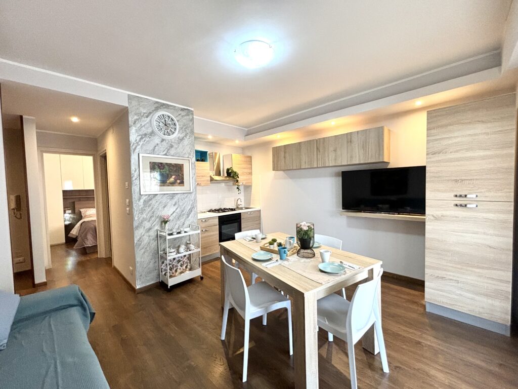 The “Cavalluccio Marino i4” apartment is a two -room apartment located on the first floor of a building without lift in the center on Piazza Fermi.